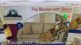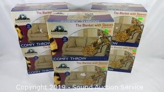 Lot #0132: 6 New Fleece Throw Blankets w/Sleeves