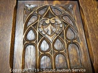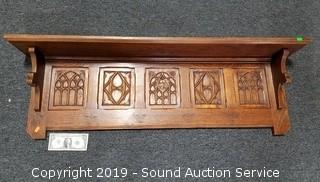 Lot #0378: Antique Oak Ornate Shelf w/Plate Groove