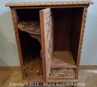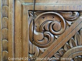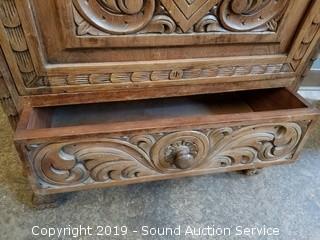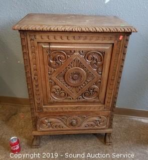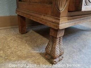 This auction has some incredible antiques! Includes: Amazing Mahogany Carved Claw & Ball Foot Dining Set, Antique Open Hutch Buffet, Unique Antique Bar, Ornate Carved Panels, Re-framed Antique Beveled Glass Windows, Bronze Sculpture, Art Nouveau Stained Glass Lamp, Leaded Stained Glass Shades, Deer, Antelope, Warthog Mounts, Brass Decor, Carved Wood Sculptures, Antique & Vintage Fine China, Art Glass, Interlocking Wood Flooring, Cedar Siding, John Deere Lawn Sweeper, Sconces, Antique Refectory Table, Men's & Women's Apparel, Dolphin Table, & Much More!