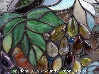 Lot #0265: Art Nouveau Leaded Stained Glass Oval Lamp Shade