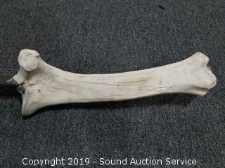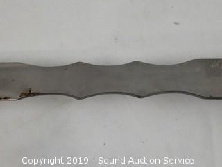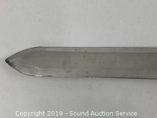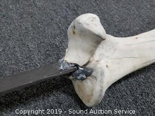 Item Description: Liquid metal was poured into the handle to keep the blade in place. Genuine bone handle. Blade has been attempted to be sharpened. Approx. 33" long blade, 14" long bone handle.
