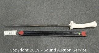 Lot #0398: Bone Handled 2-Hand Claymore w/Leather Sheath