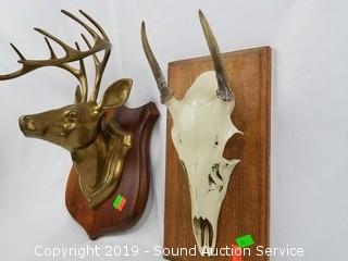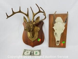 Lot #0206: Brass Deer Mount & Painted Deer Skull Mount