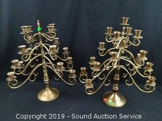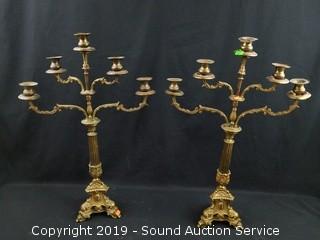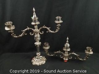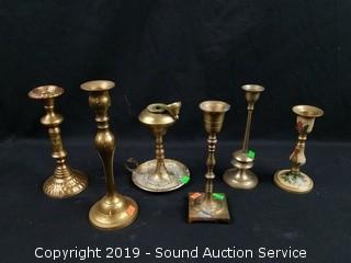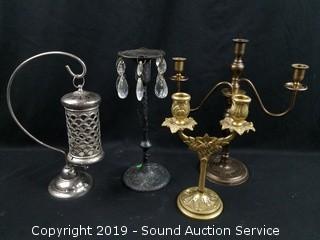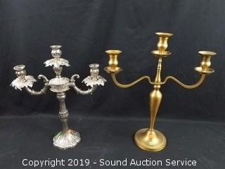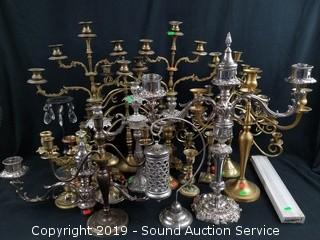 Lot #0292: Brass & Silverplate Candelabras & Candle Holders