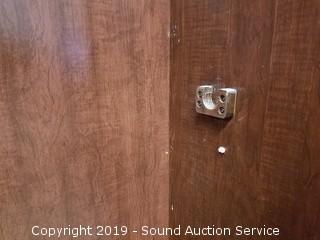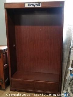Item Description: Needs a bulb, takes a fluorescent 23" bulb. Has 2 spots for dowels to hang clothes. Approx. 76" H, 45.5" W, 16" D.