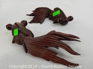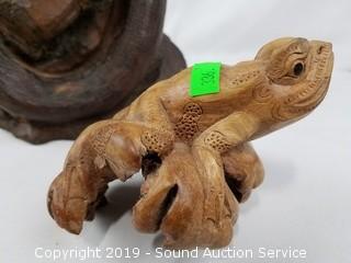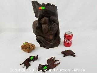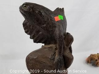 Lot #0336: Carved Wood Fish, Frog, Turtle & Iguana
