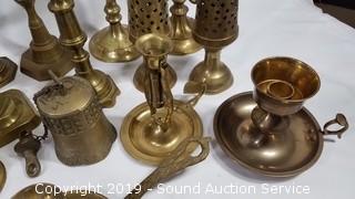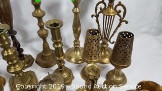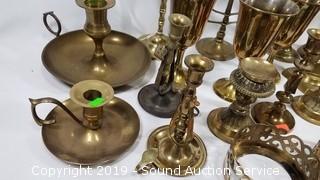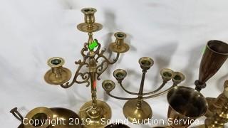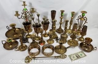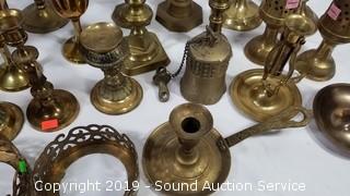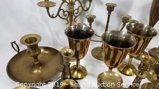 Lot #0141: Collection of Brass Candle Holders, Goblets & More