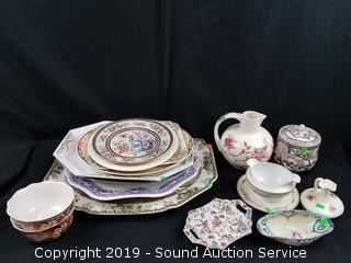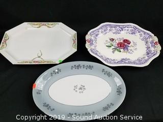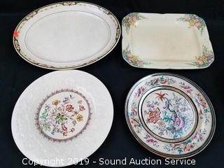 Item Description: Some are hand painted. Brand include Nasco, Meito, Shanghae T. Till & Son, Booths Corinthian Wild Rose, Aladdin, Tirschenreuth, Seyei, Copeland Mayflower, and Johnson Brothers The Friendly Village. Largest platter is 20" x 16".