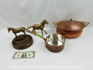 Lot #0085: Copper & Brass Cookware & Horse Figures