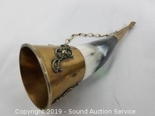 Item Description: The horn is adorned with brass, made from genuine horn, 8" long. The New Zealand Kiwi is made from genuine possum fur.