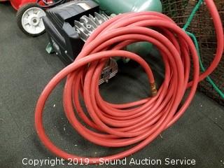 Item Description:  Has an air leak. Comes with hose. 125 max  PSI, 4 gallon capacity. Approx. 13" x 20" x  15".