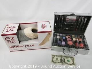 Lot #0340: NEW Ladies Makeup Kit & Memory Foam Slippers