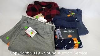 Item Description: Nautica 2pc. sleepwear, 2 Puma sweat shorts, Merino wool and pima cotton sweater, and Boston Trader fleece lined flannel jacket.
