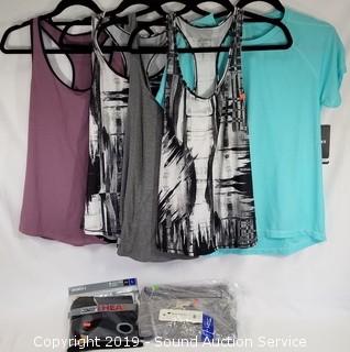 Item Description: Asics tank tops, Asics athletic shirt, and Champion sweater.