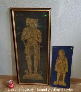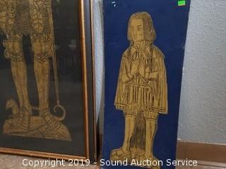 Item Description: Knight and squire. Approx. 44" x 19.5" and 26" x 11".