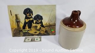 Item Description: Crock is approx. 11" H, 7" diameter. Sign is 16" x 11".