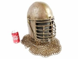 Lot #0267: Unique Steel Forged Helmet w/Chain Mount