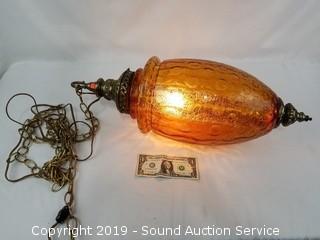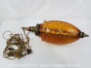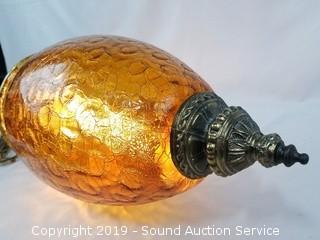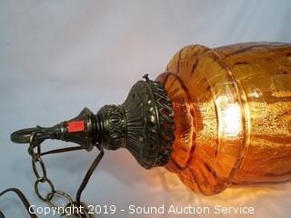 Lot #0297: Vtg. Amber Crackle Glass Hanging Lamp