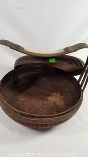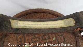 Item Description: Has an old label saying it was meant for carrying eggs over 50 years ago. Approx. 11" to handle, 12" diameter.
