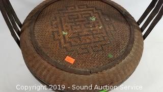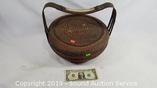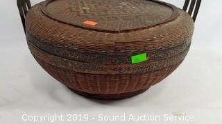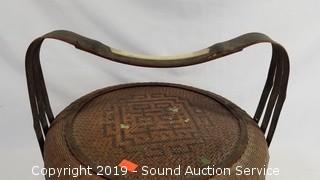 Lot #0330: Vtg. Bamboo Lidded Handled Basket