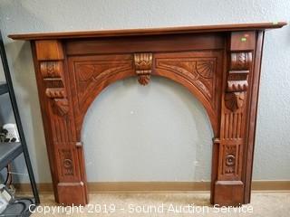 Lot #0407: Vtg. Ornate Carved Wood Fireplace Mantle