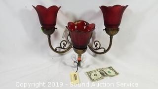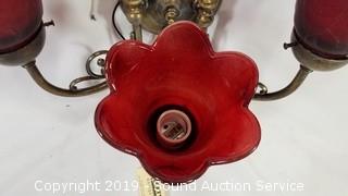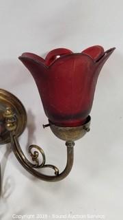 Lot #0392: Vtg. Triple Ruby Glass Shade Elec. Wall Sconce