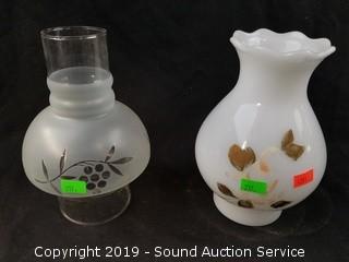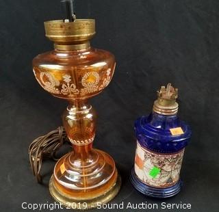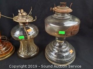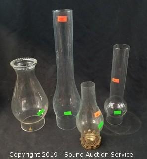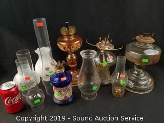 Lot #0217: 4 Vtg. Oil Lamps & 6 Chimneys