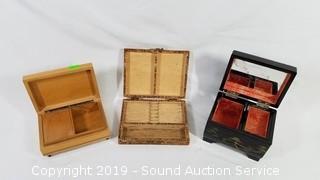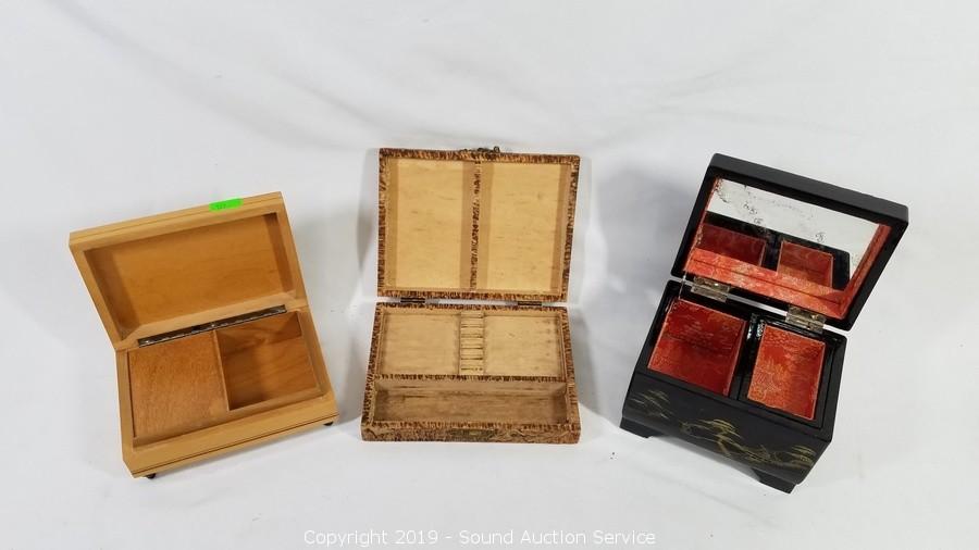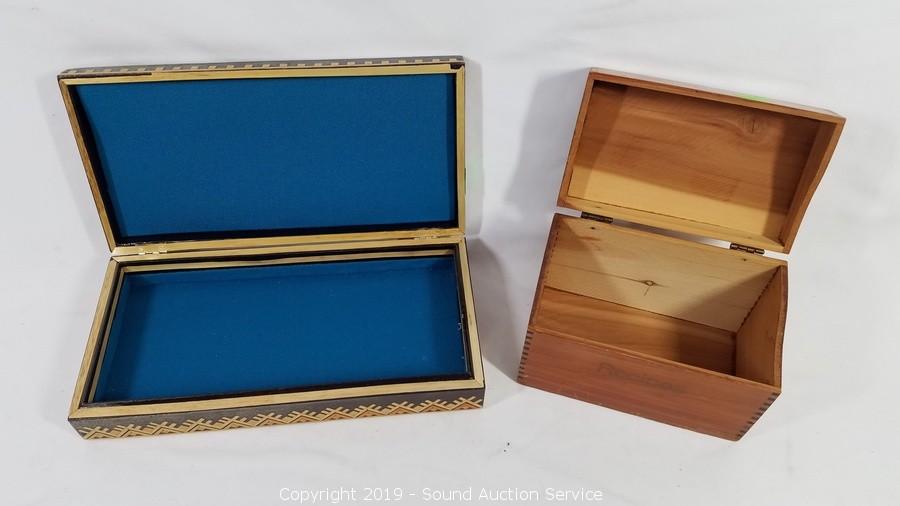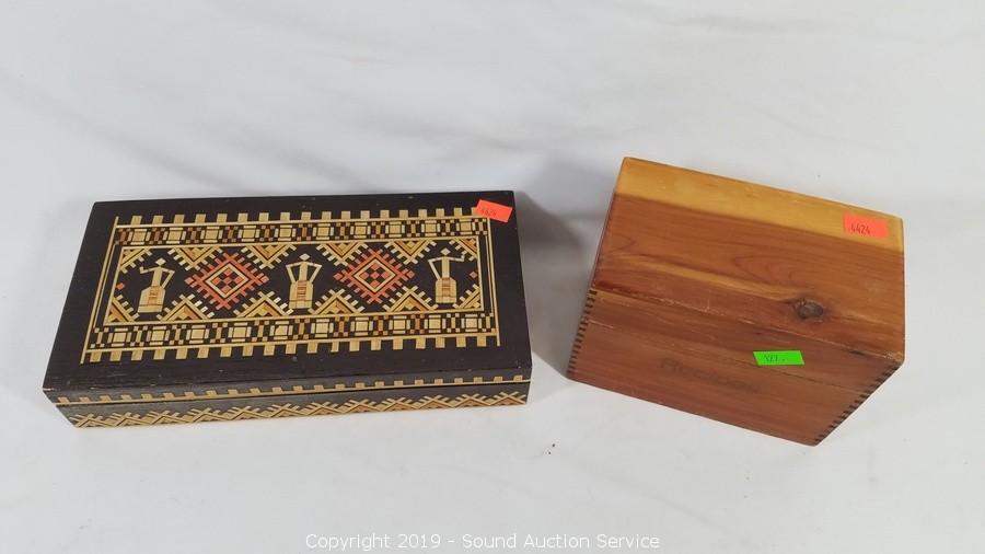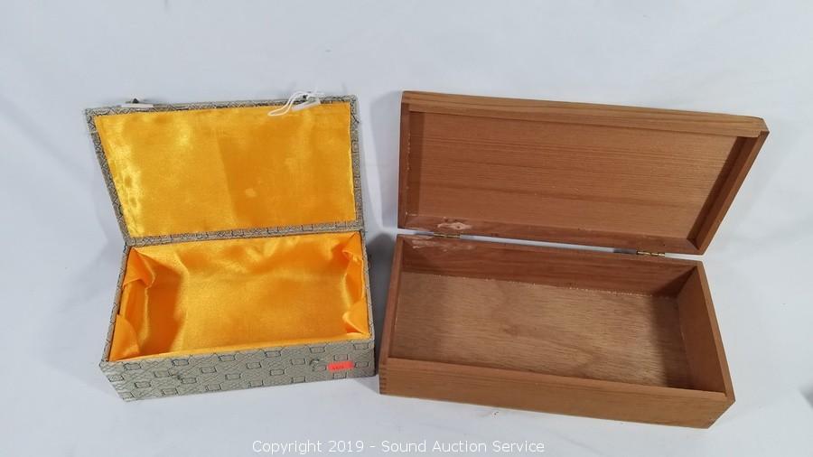 Lot #0127: 8 Wooden Trinket Boxes & Game Set