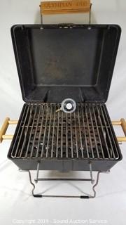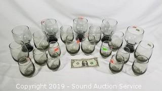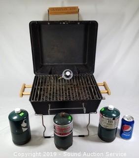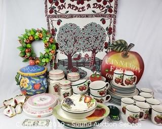 Item Description: 21pc. Smoke Glass Drinking Glasses, Vtg. Ladies Di Vinci Coat w/Fur Collar, Wooden Cutting Board & Knife Block Set, Century Link High Speed Wireless Modem Kit (missing power cord?), Apple Theme Kitchen Dishes & Decor, Pear Casuals dish set (8 dinner plates, 8 lunch plates, 7 bowls, 4 soup mugs, 8 coffee cups, salt and pepper, serving bowl and platter), 3pc. canisters, burner covers, wall decor, napkin holder, and Clay Art hand painted canister), Pyrex Glass Bakeware, Fire Resistant Security Chest & Ammo Tin, Ship Artwork & Literature, Sears Roebuck Wooden Sewing Machine Cabinet (Approx. 30.5" H, 22" x 17.5". Will fit a 16.5" x 7" sewing machine), 2-Drawer Metal Filing Cabinet, Golde Manumatic Slide Projector w/Case, Aluminum 4'ft Folding Step Ladder, 4 High Traction Studded Tires & Other ((4) Steel Radial CTR M+S P215/70R15 97S studded, and (1) Euro SXP P215/70R14 96S tire), Olympian 4100 Portable Gas Outdoor Grill w/Propane Tanks, 4 Utility Lights & Drop Light, Unique Carved Cane & Walking Stick, and More.