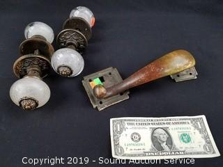 Lot #0309: Glass Door Knobs & Brass Door Pull
