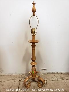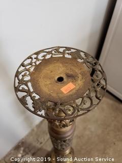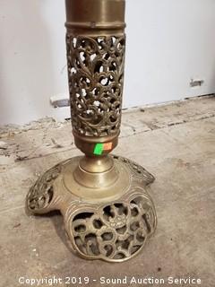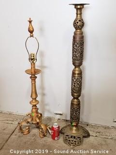 Lot #0314: Large Brass Table Lamp & Ornate Candle Holder