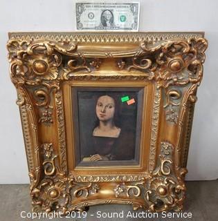 Item Description: By Perugino in the Pitti Palace, France. Frame is incredible, 3" thick, 18-1/2" x 23-1/2", fits 9" x 10" artwork.