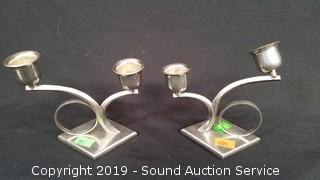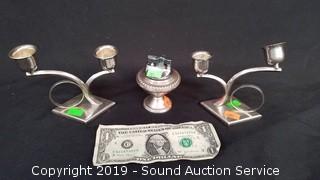 Lot #0281: Sterling Candle Holders & Weighted Table Lighter