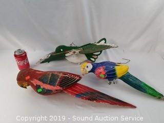 Lot #0232: Vtg. Wooden Parrots & Hanging Bird Decor