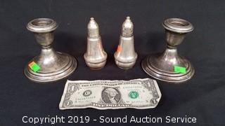 Lot #0282: Weighted Sterling Candle Holders & S/P Shakers