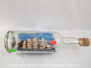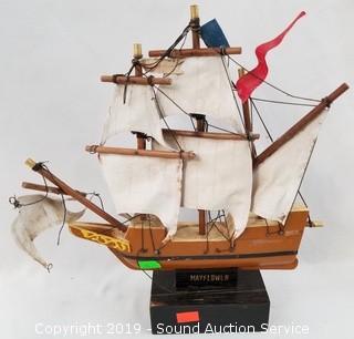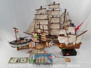 Item Description: Gorch Fock, Mayflower, Philippines seashell lamp, model ship in bottle, and other. Largest is approx. 16" x 19".