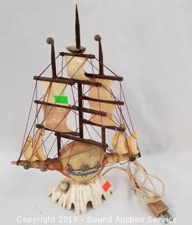 Lot #0234: Wood Model Ships & Seashell Ship Lamp