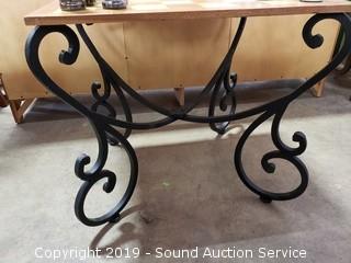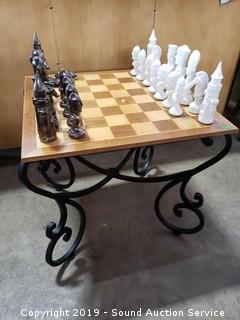 Lot #0324: Wrought Iron Base Chess Table w/Ceramic Pieces