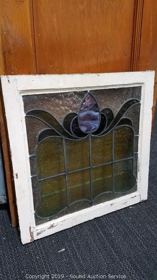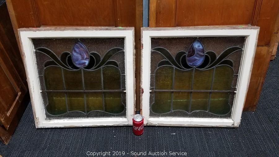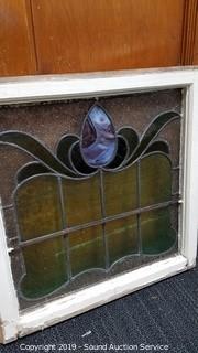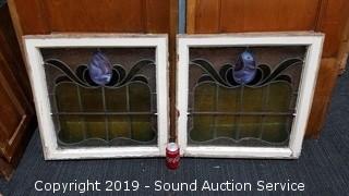 Lot #0357: 2 Vtg. Leaded Stained Glass Windows