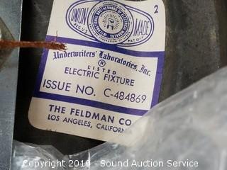 Item Description: Chandelier is brass finish, 16" H, 18.5" diameter with 17" long chain. Lamp is 32" H, no shade. Both work.