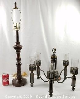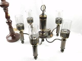 Lot #0040: 5-Light Chandelier & Table Lamp