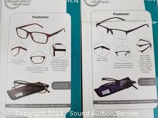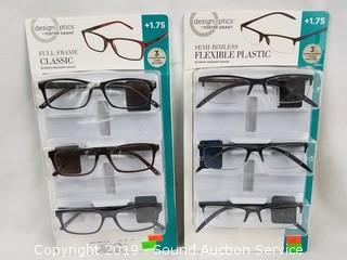 Lot #0216: 6 Pairs Design Optics +1.75 Reading Glasses