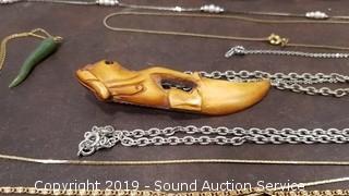Lot #0118: Fashion Jewelry Necklaces & Carved Bone Pin