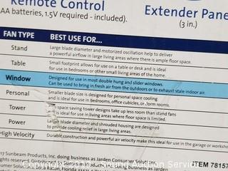 Item Description: Programmable thermostat, reversible blades, 3 speed settings, remote control. Works, complete, has been used.