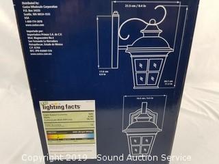 Item Description: Brushed patina finish with clear water glass. 9W, 506 lumens, 3000k color. 11.3" H, 6.5" W, 8.4" D.