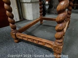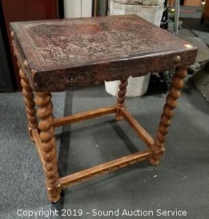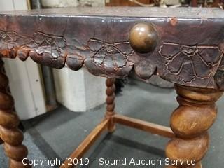 Lot #0025:     Antique Tooled Leather Top Barley Twist Table
