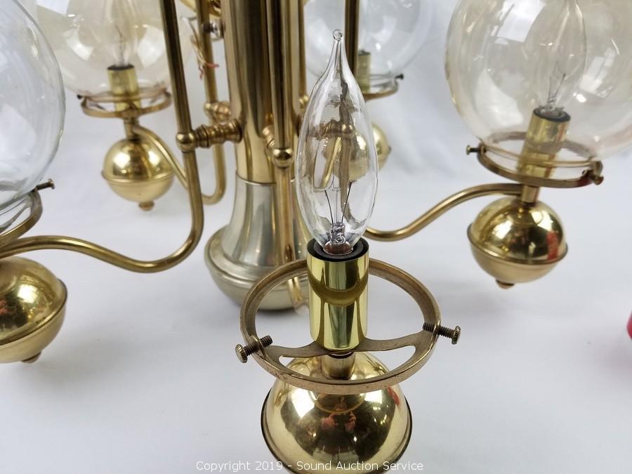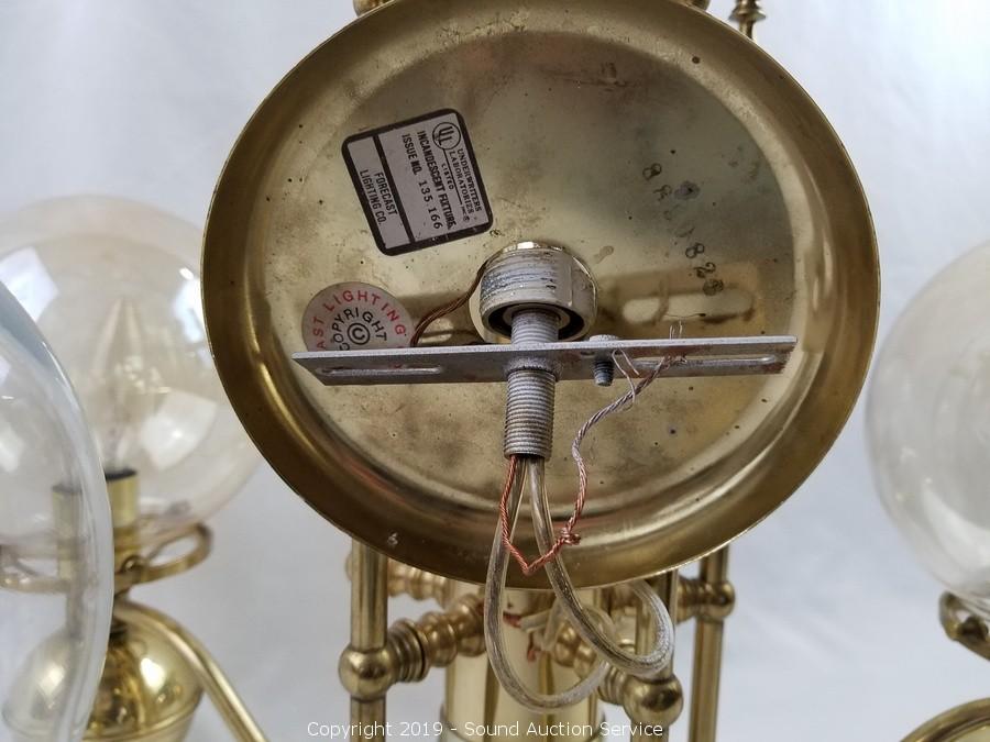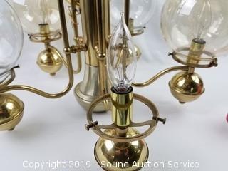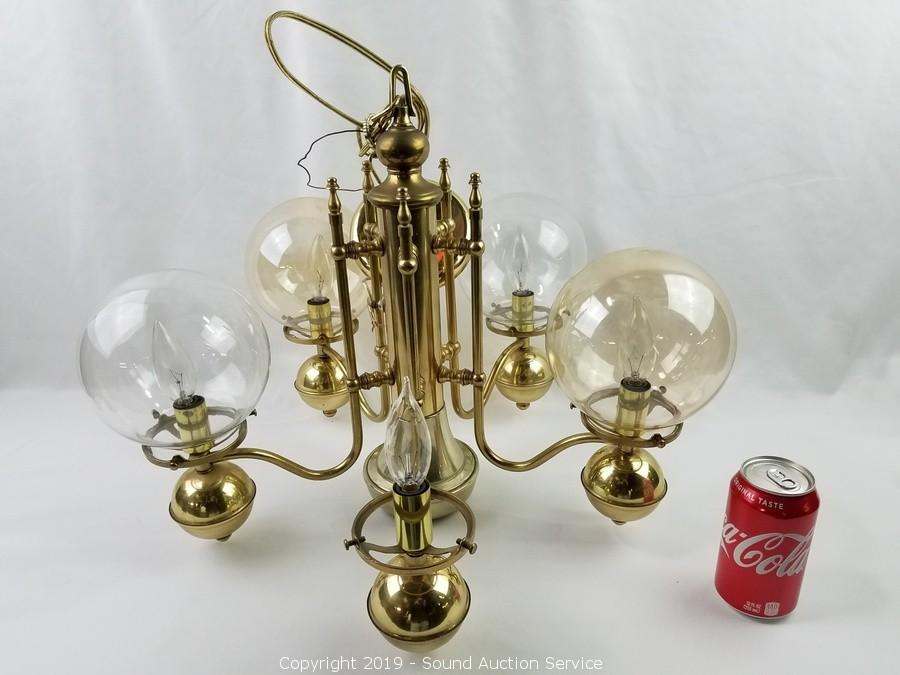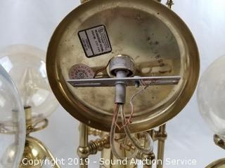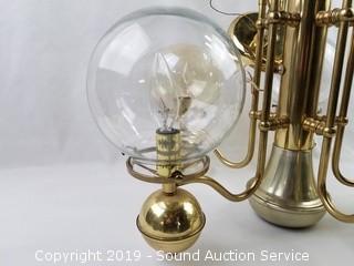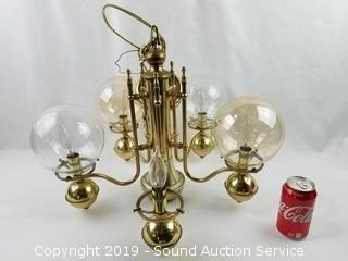 Item Description: Works. Missing one of the glass shades. Approx. 17" x 20" diameter with a 8" long chain.