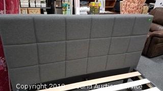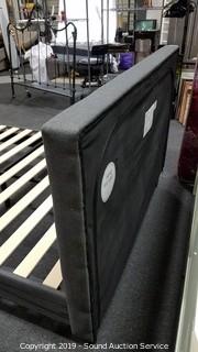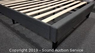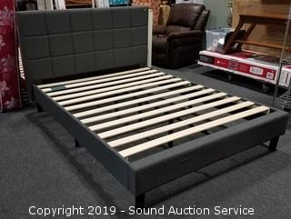 Lot #0390: New Queen Upholstered Square Stitched Platform Bed
