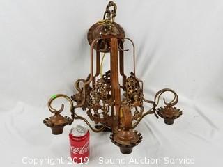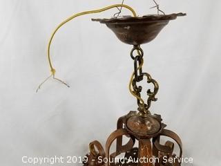 Item Description: Works. 5 lights. Approx. 18" x 20" diameter with a 6" chain.