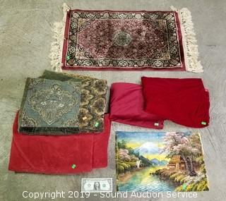 Lot #0179: Throws, Velvet Fabric, Accent Rug & Tapestry